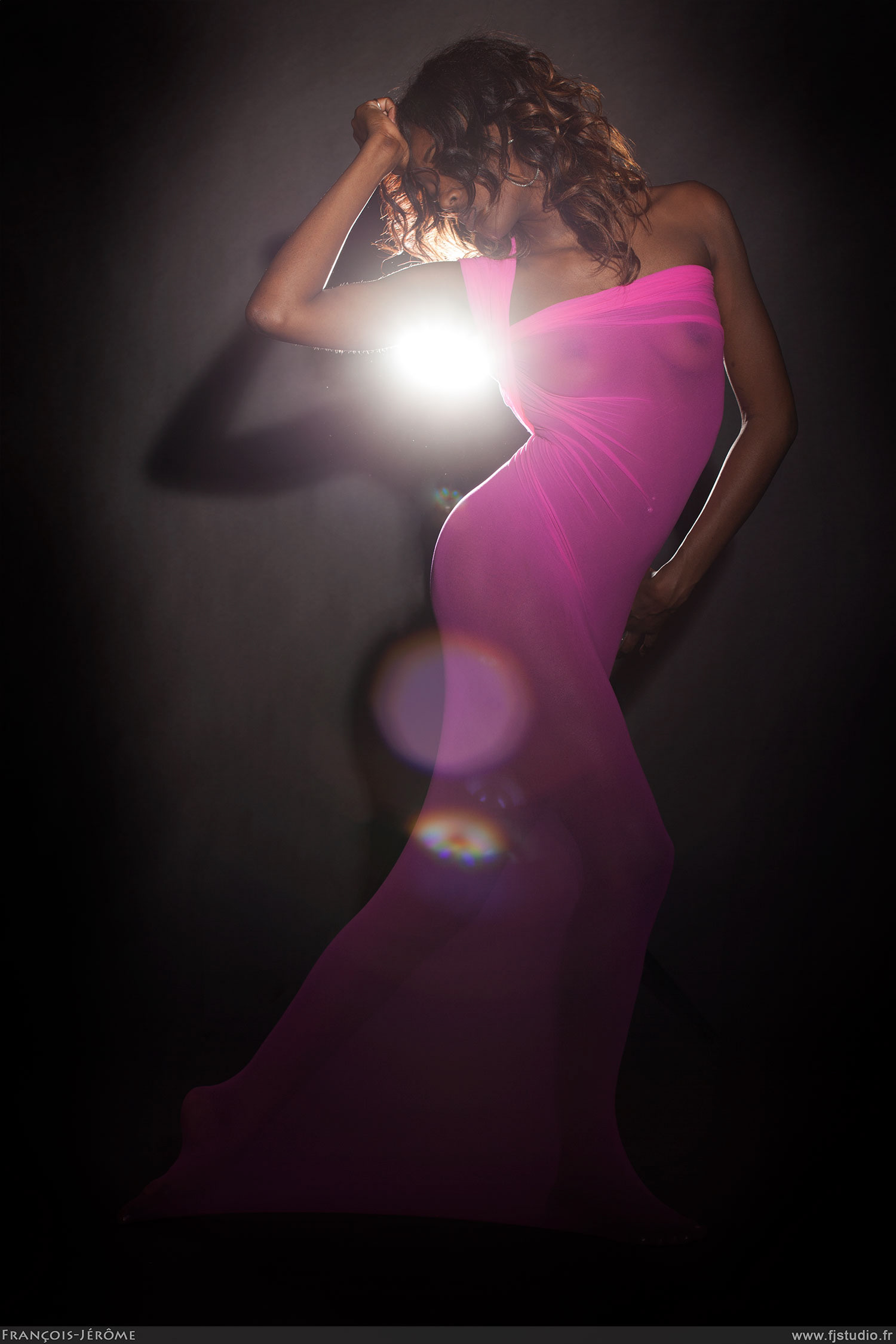 J'ai demandé aux modèles de se glisser dans un grand sac en nylon spécialement fabriqué pour cet usage, puis j'ai travaillé la lumière, parfois avec des gélatines, souvent en effet "contre jour" pour mettre en valeur les formes des modèles et la semi transparence du sac